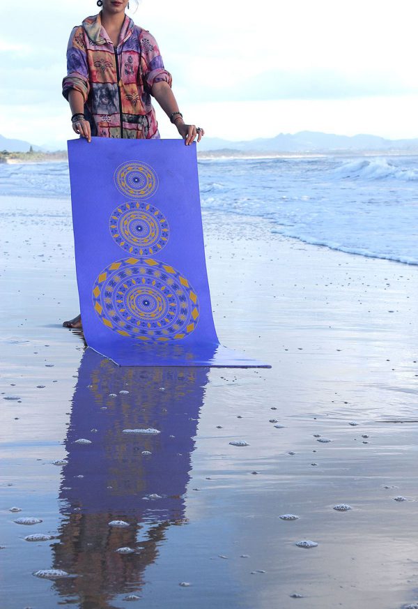 Our Mandala Yoga Mat is designed in Purple, Yellow and Indigo. This design is perfect for everyone wanting to cool down, have a think and come back more alive.